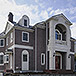 Vanityブルーの天板が白いキャビネットや壁紙にに映えるヴァニティー。